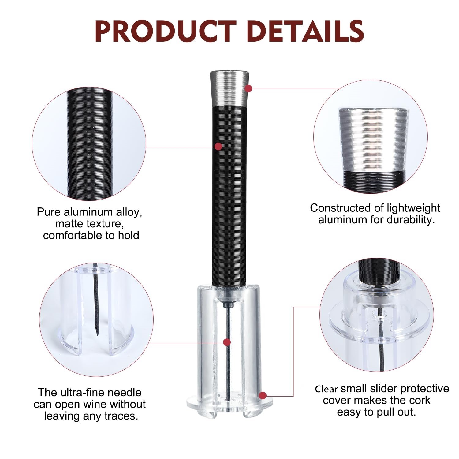 The fine, stainless steel needle ensures every cork comes out clean and intact โ perfect for preserving the taste and elegance of your favorite bottle.