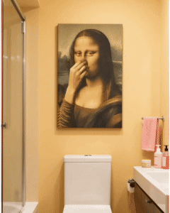 Mona Lisa Holding Her Nose – Canvas Print for the Bathroom