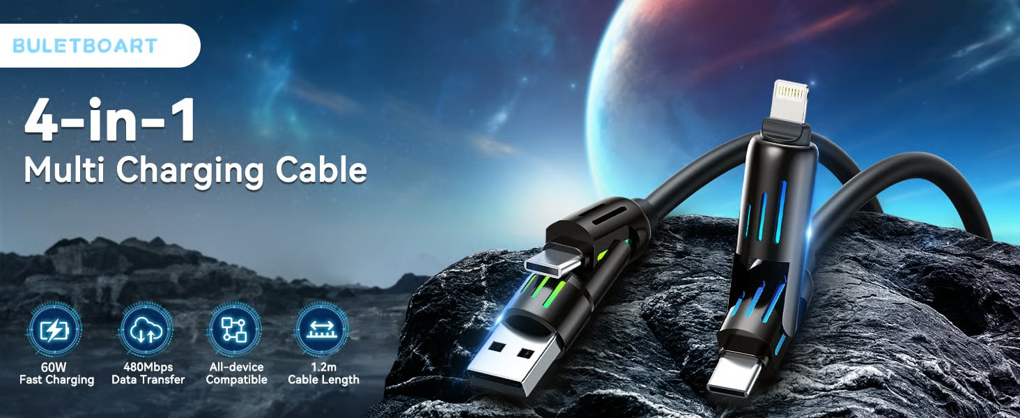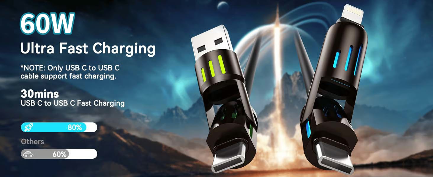 Charge your devices faster than ever with the 4in-1 USB C Cable 60W.