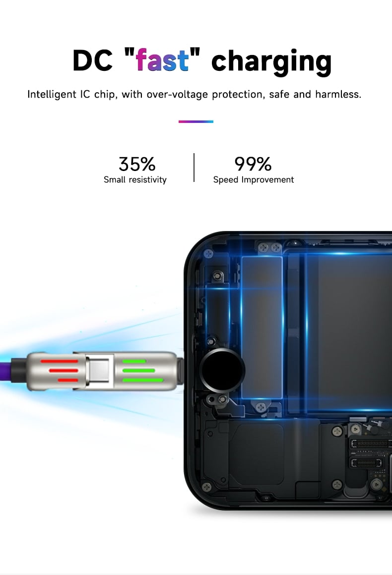 Our Flexible Charging Cable is universally compatible with iPhone, iPad, Samsung smartphones, and other devices, ensuring efficient fast charging. Its lightweight, knot-free design makes it perfect for on-the-go portability.