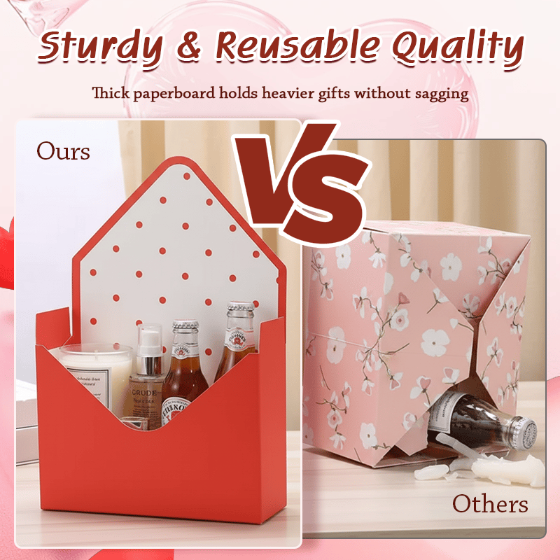 Forget hiding your gifts in a bag. This box features an open-top, envelope design that displays your items beautifully. Arrange treats, flowers, and keepsakes so the recipient gets a "WOW" moment the second they see it.